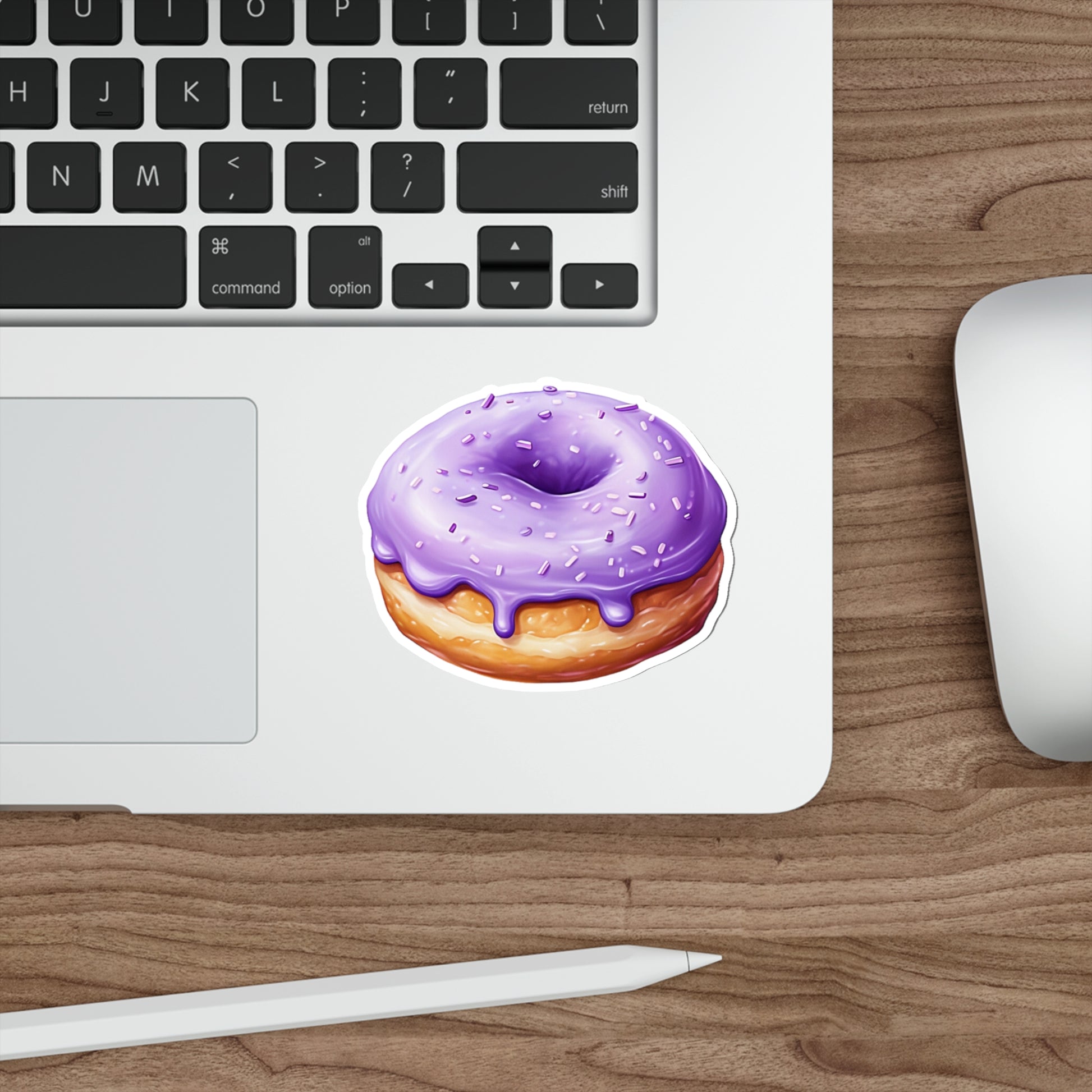 Ah, the purple yam, also known as ube, is a root vegetable commonly found in Southeast Asia, particularly in the Philippines. It has a distinctive deep purple color and is known for its sweet and nutty flavor. Ube is often used in various Filipino desserts, such as ube halaya (a sweet jam-like dessert), ube ice cream, and ube cake. It's also used in savory dishes like ube-filled pastries and even as a natural food coloring agent. The vibrant purple hue of ube adds an eye-catching element to dishes and makes it a unique and beloved ingredient in Filipino cuisine. An ube donut is a type of donut that is flavored with ube. Ube donuts are popular in Filipino bakeries and have gained popularity in other parts of the world as well. To make ube donuts, the dough is typically infused with ube flavoring or ube jam/puree, resulting in a purple hue. The dough is then shaped into donut rings and fried until golden brown. Once cooked, the donuts are often coated in sugar or glaze to enhance the sweetness. Ube donuts can be enjoyed as a delicious treat on their own or paired with a cup of coffee or tea. The unique flavor and vibrant color of ube make these donuts visually appealing and enticing to many people. These stickers are great for both indoor and outdoor use as they are made with thick, resistant, laminate vinyl material. The easy-peel backing makes for great ease of use, while the matte finish helps the designs look sleek on any surface. .: Material: water-resistant vinyl .: Suitable for indoor and outdoor use .: Easy peel backing .: Matte finish